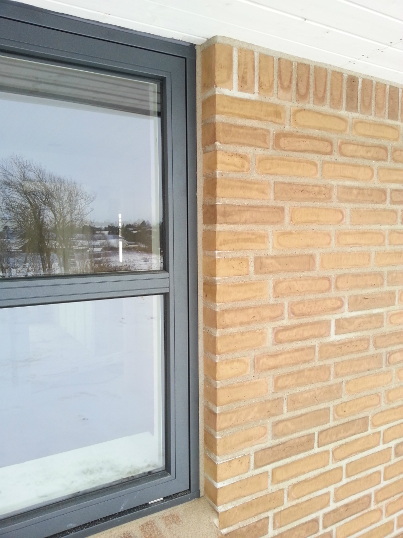 Tirsdag var der også besøg af de håndværkere der skulle fuge omkring vinduer/døre og mellem murværk og udhæng. Arbejdet er udført – med en enkelt mangel – og det ser ganske fint ud.