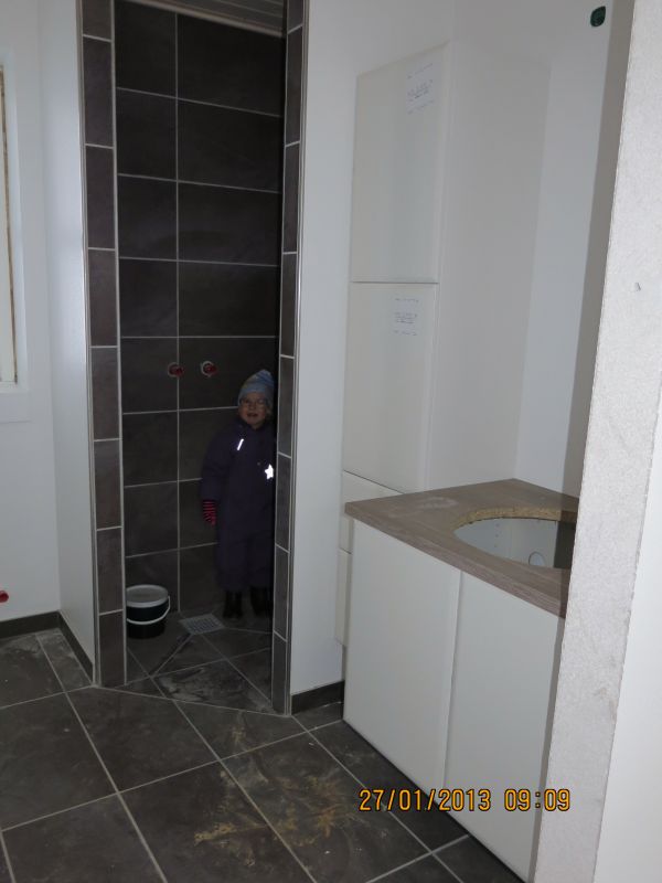 Vi har ventet længe henover jul og nytår og er glade for, at der endelig sker noget. Udvendigt mangler der ikke meget og det er små skridt der tages indvendigt. Det er sjovt sådan en forskel der er fra starten af byggefasen til nu. Til at begynde med kunne man se ændringer hver eneste dag, mens det på nuværende tidspunkt og fremover, hvor det er finishen der arbejdes med, næsten ikke er til at se hvad der er lavet.